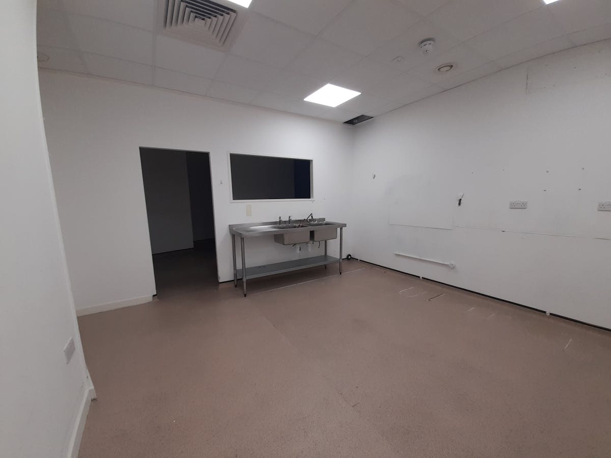 The premises are currently arranged as 2 large subdivided areas, administration office, staff break-out room, disabled toilet and large commercial kitchen area. Loading is via the rear service corridor/area and 1 allocated car space is provided within the lower parking deck.