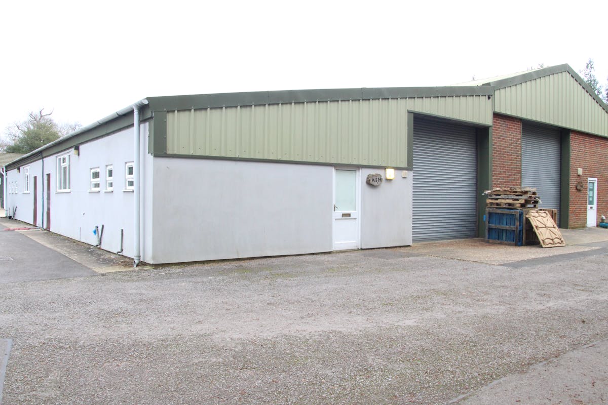 Ash comprises a single storey industrial/warehouse unit with wc, kitchen, electric loading door 3.8m wide x 3.73m high.