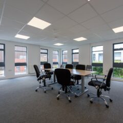 The unit benefit from a generous car parking ratio and dedicated service yard to the rear. The open plan offices are accessed via an entrance lobby and benefit from kitchenette and WC facilities. The warehouse area has a clear internal height of approximately 6.5m, and is entirely column free with extensive natural light via the roof lights. Full height loading doors provide access to the loading area.