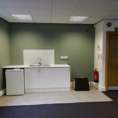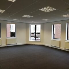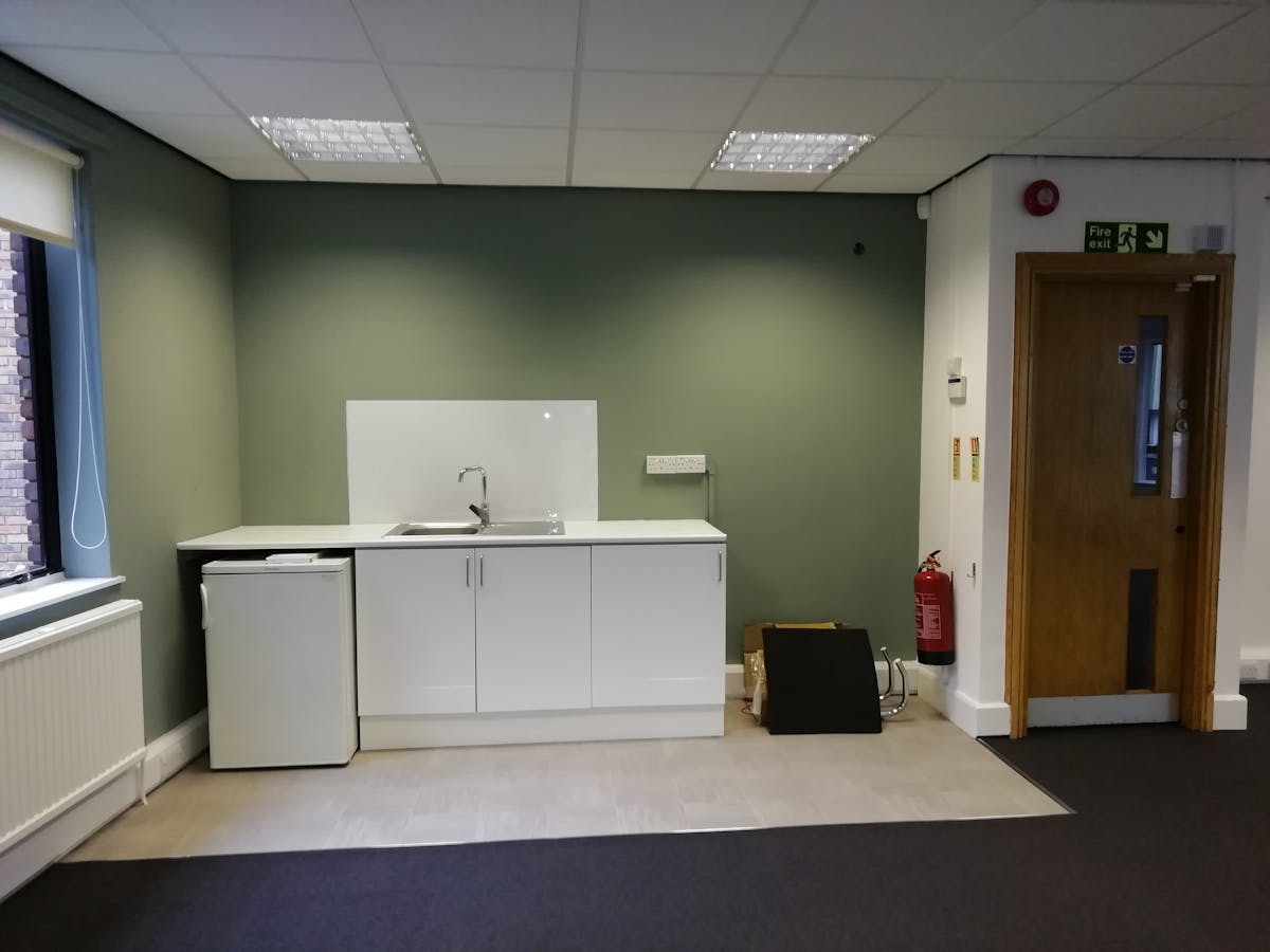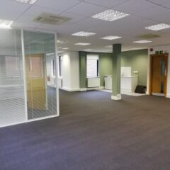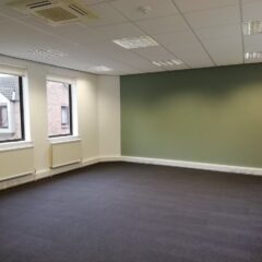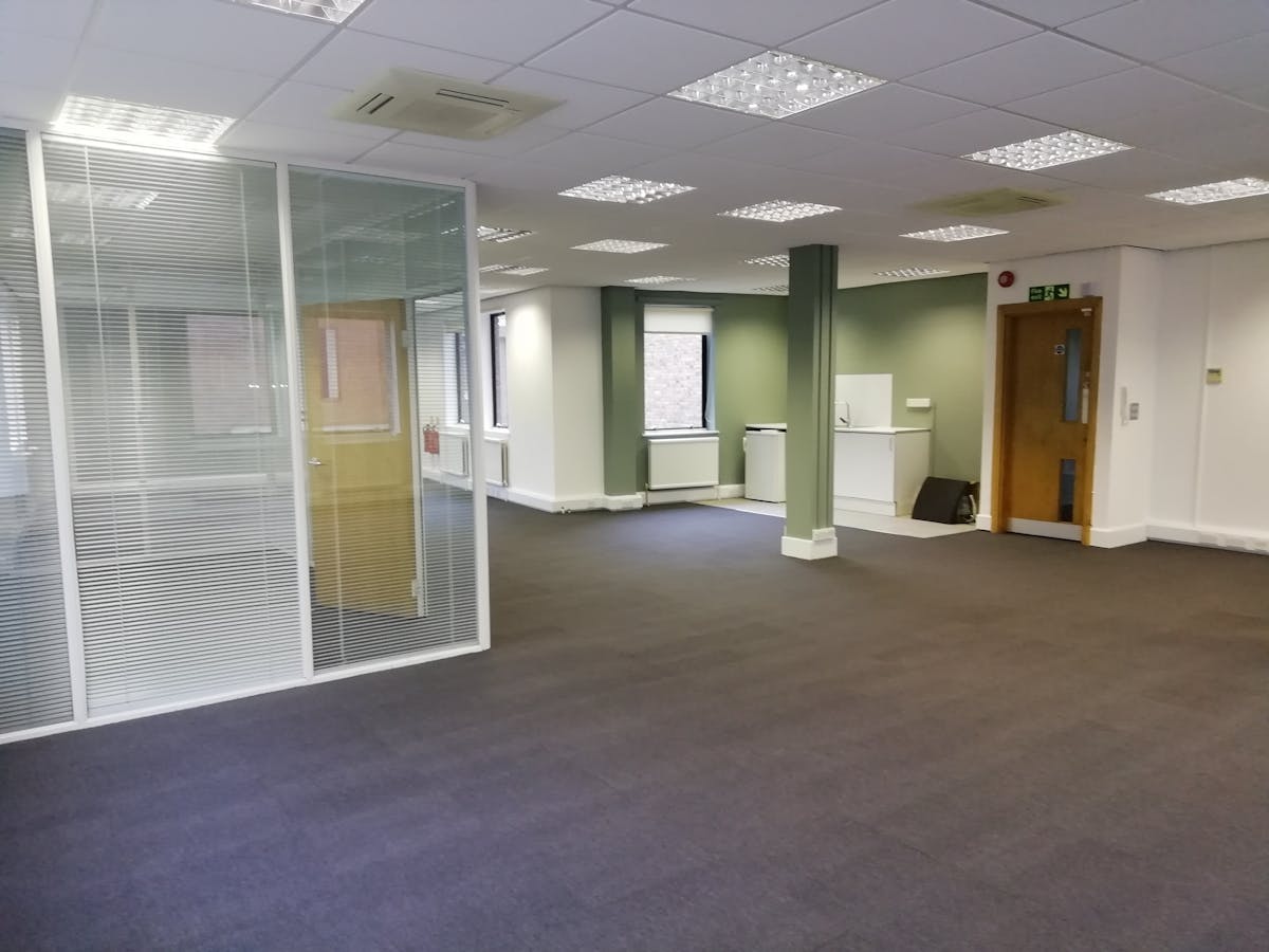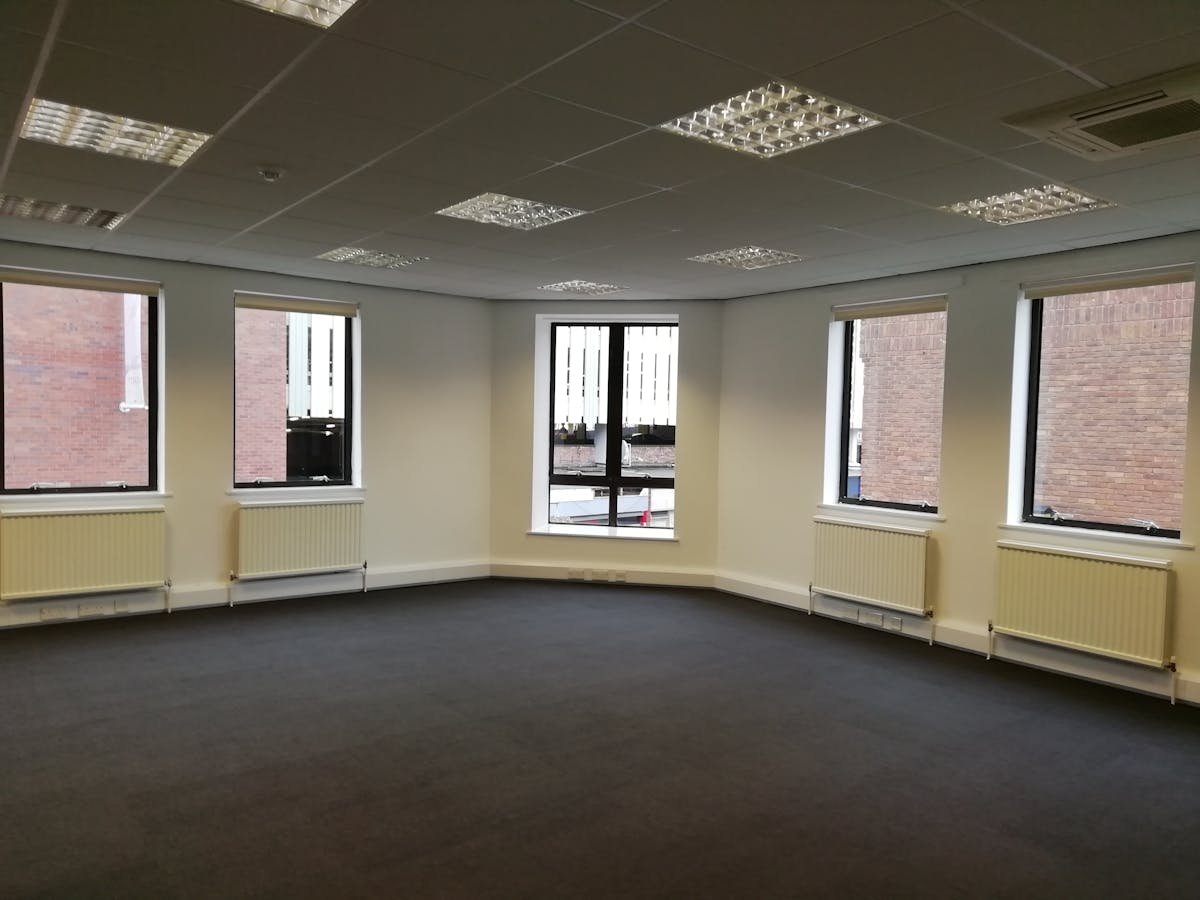 This first floor suite provides a modern open plan office area benefiting from a glazed meeting room/separate office and a kitchenette. There is excellent natural daylight providing great working conditions. The suite comprises air conditioning, comms cabinet with Cat 5 cabling, gas central heating, entry phone system, fully carpeted, suspended ceiling with recessed lighting as well as separate WC facilities and onsite parking.