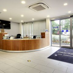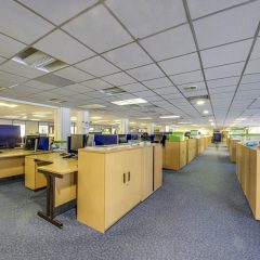 There are various office spaces available, ranging from sizes of 140 sq.ft. to 1,190 sq.ft. These spaces have central heating, air conditioning, double-glazed windows, suspended ceilings, LED lighting and are fully carpeted within. Single desk rentals are also available. There is an on site cafe and catering services providing hot and cold food and business catering. In addition, on site there is free and extensive car parking, overnight and weekend security, a head office and a maintenance team.