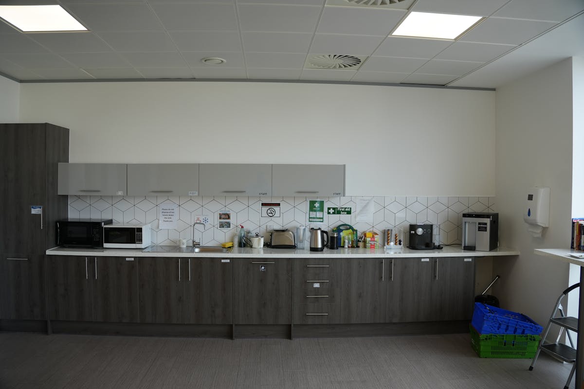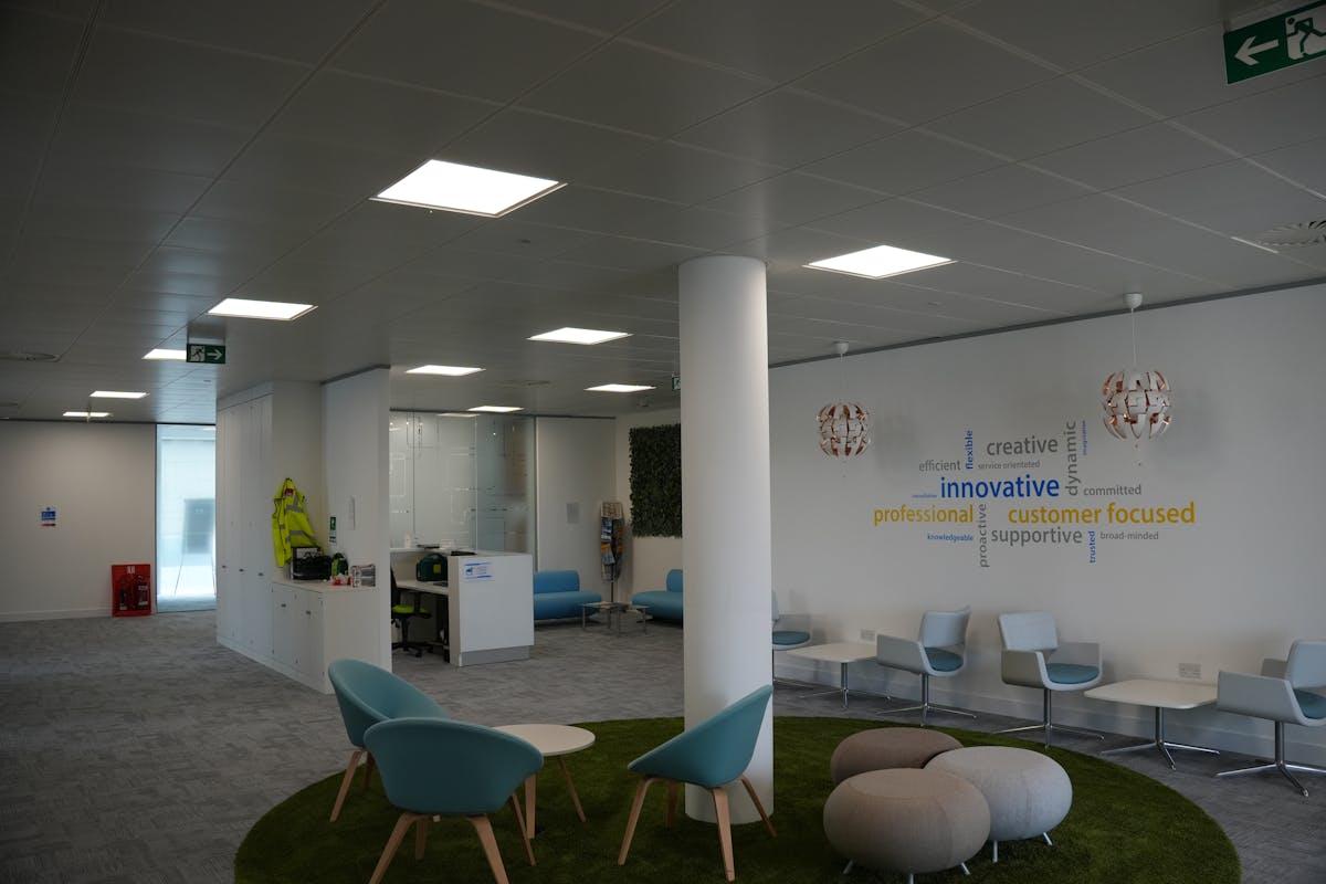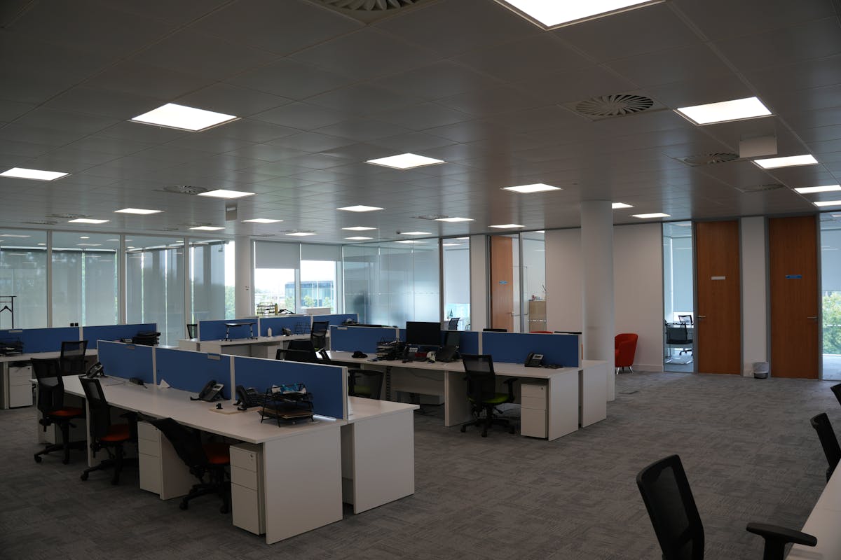 The available offices are on the second floor of a self-contained office building. The triple height reception with 2x 10-person passenger lifts leads onto the modern fitted office space with metal tiled raised access floors, 2.9m floor-to-ceiling height with metal tile suspended ceiling, modern LED lighting and efficient heat recovery based air conditioning system.