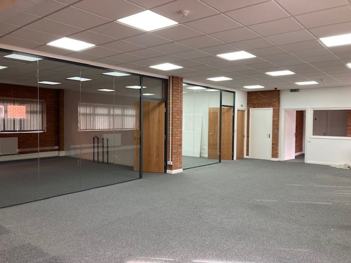 Suite 2 provides a mixture of open plan office space, 2 meeting rooms and a good sized storage/workshop room. With its own private entrance and wc/kitchen facility the suite is self contained. There is LED lighting throughout the suite and gas fired central heating.