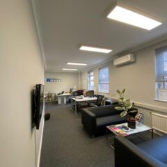 The available office suite comprises the first floor of this three storey building. The offices are arranged on an open plan basis with 1 large and 2 small meeting rooms. There are private WC facilities and a kitchenette. The office benefits from air conditioning, LED lighting,