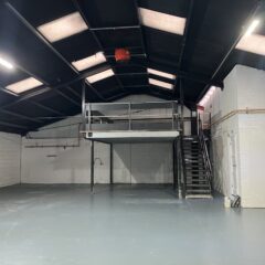 The property comprises a modern industrial/warehouse unit of steel portal frame construction, arranged as a ground floor warehouse with an additional mezzanine area providing storage/office accommodation. The unit benefits from an electric loading door, secure yard, LED lighting, three-phase power, and W/C facilities. The internal eaves height is approximately 3.4 metres. The property is suitable for a variety of light industrial, storage, and manufacturing. Motor trade use will not be permitted.