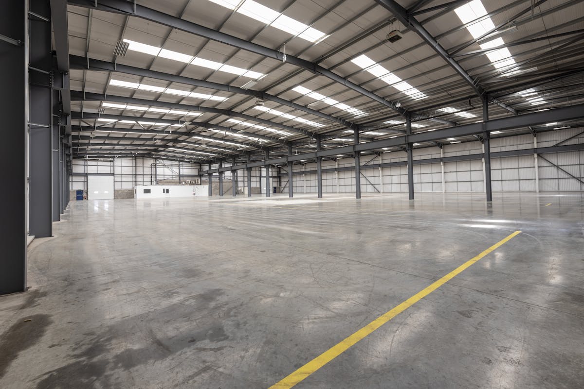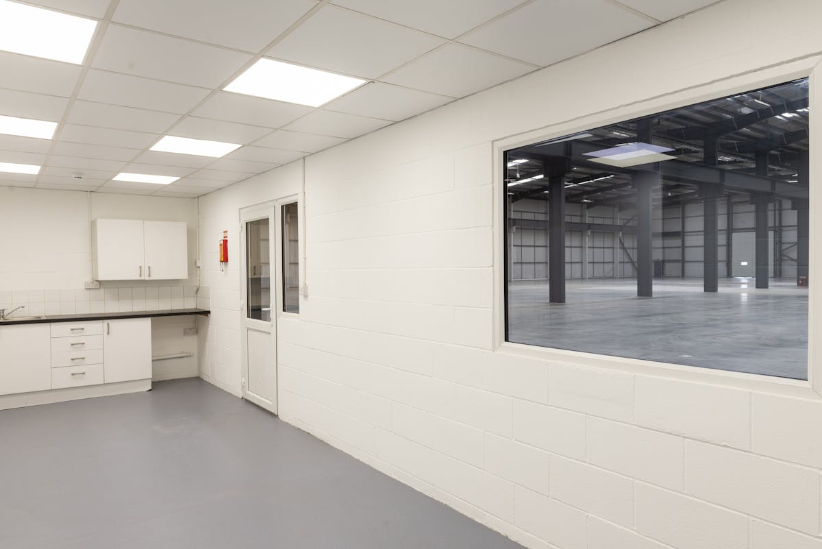 Unit 6 comprises a modern, self contained secure warehouse benefiting from front and rear loading yards with a depth of 36.5m and 28m respectively. Each yard area is serviced by 2x surface level loading doors, with the ability to run a cross docked operation. The single storey offices and ancillary accommodation are provided at the front of the unit and include WC's and a kitchen area. A welfare office and kitchen extending to 500 sq ft is provided within the warehouse.